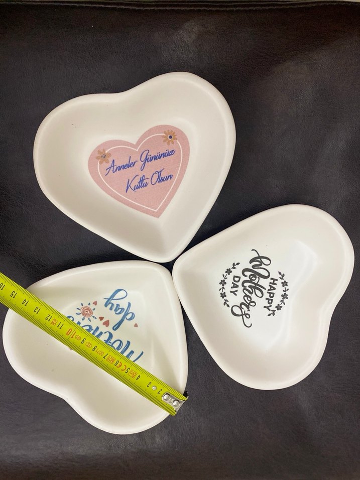 Seramik çerezlik, kalp şeklinde, üzerinde "Anneler Gününüz Kutlu Olsun" yazılı 3 adet çerezlik. İADE YOKTUR #kalp #evdekoru #hediye