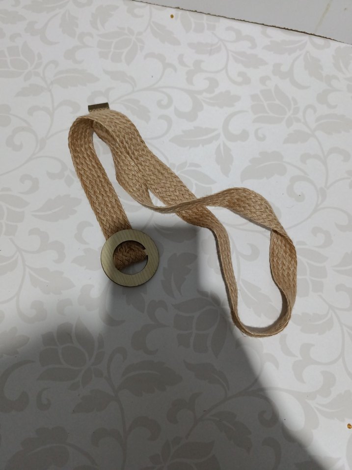 Bej renkte, keten kumaştan yapılmış elastik bantlı bohem tarzda kadın kemeri, rahat ve minimal tasarıma sahiptir. cesit cesit kemer korse tane 50