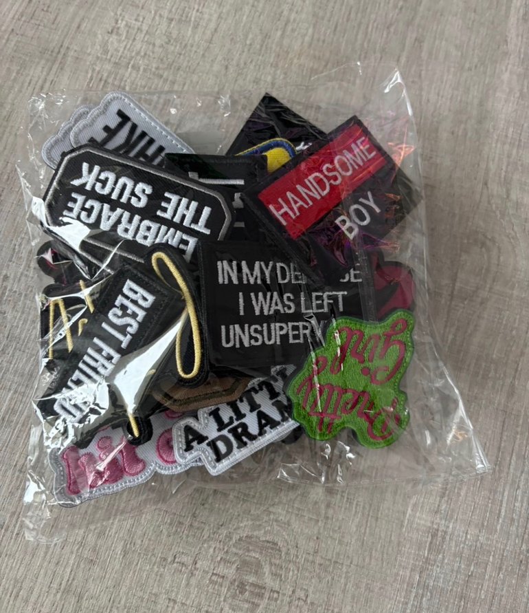 Renkli, baskılı patch içerir. Kolay yapışma için cırt cırtlıdır, rahat ve gevşek stile sahiptir. 25-30 arası adeti.