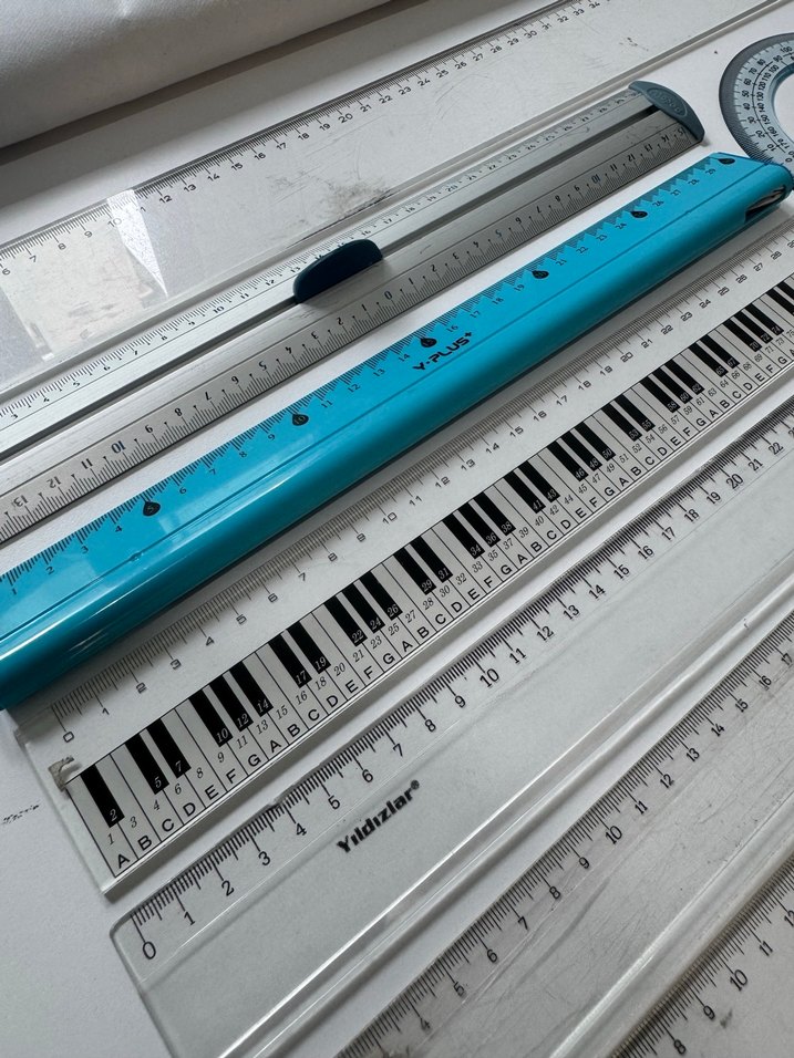 Çeşit çeşit cetvel 30 cm ve 50 cm Üçgen cetveller ve yuvarlak gönye / iletki Hepsi iyi durumda ikinci el. Ne alırsan 50tl, 5 adet 200tl 12 adet 350tl