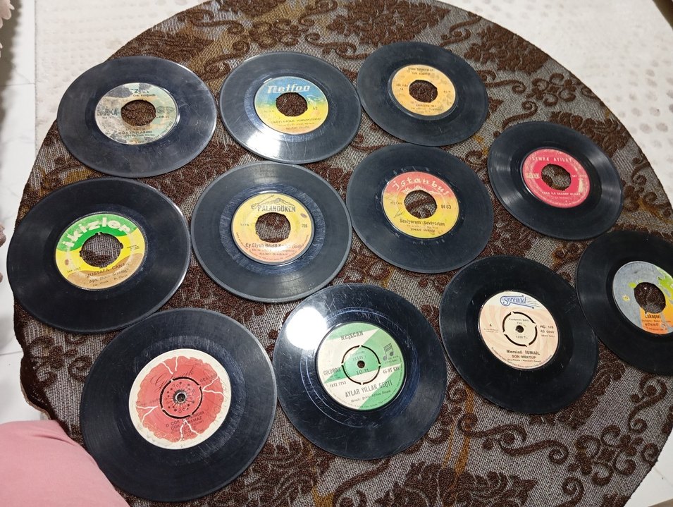 Türkçe müzik 150TL çogu nostalji sanat arabesk pop müzik halk müziği yabancı pop müzik tasarımlarına sahip çeşitli eski 45'lik plak koleksiyonu, kullanılmış durumda. yabancı müzik plakların fiyatı değişik