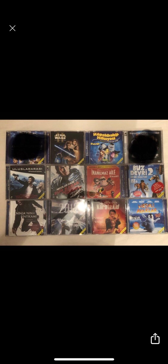 Star Wars, İnanılmaz Aile ve Karate Kid gibi çeşitli film ve müzik CD'lerinden oluşan koleksiyon.