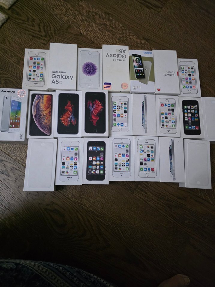 Çeşitli iPhone ve Samsung Galaxy A5 Kutuları