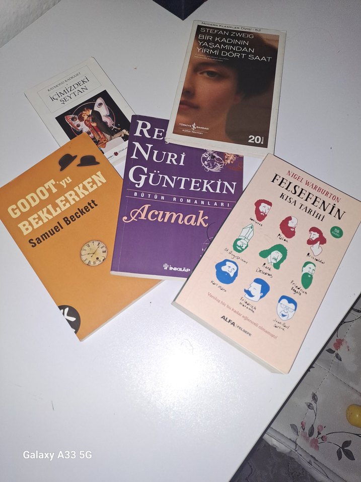 Felsefe, edebiyat ve oyun türlerinde yabancı dil kitaplarından oluşan set. Nuri Güntekin ve Samuel Beckett eserleri yer alıyor.