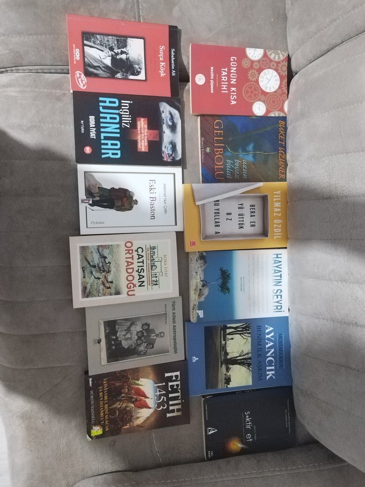 Tarih, edebiyat ve bölgesel konuları içeren çeşitli kitaplardan oluşan set. 'Ajanlar', 'Çatışan', 'Yanıcı' ve 'Hayatın Seyri' gibi başlıklar içerir.