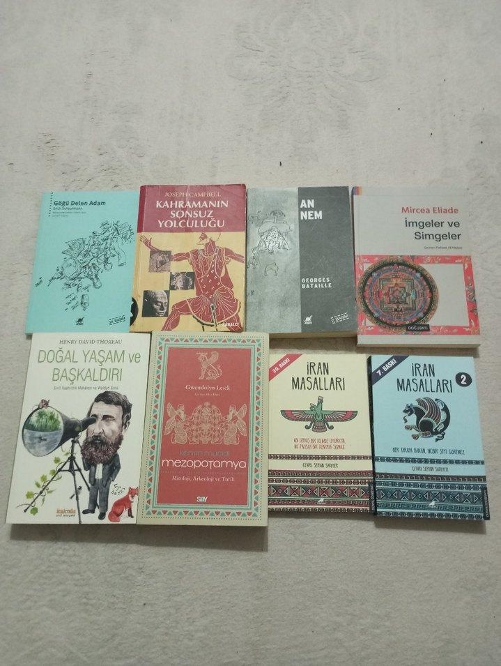 İran masalları, doğal yaşam ve başkaldırı, kahramanın yolculuğu ve Mircea Eliade'nin imgeler ve simgeler kitabını içeren kitaplar. fiyat sorunuz