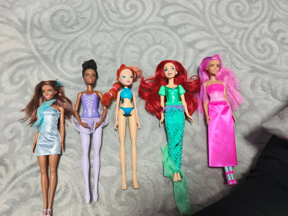Balerin, mayo, deniz kızı ve pembe elbiseli dört renkli bebek .fiyat değişiyor Ariel bloom