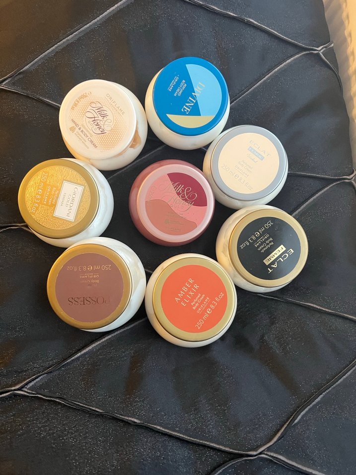250 ml kavanozlarda çeşitli kokularda vücut kremleri, cildi nemlendirmek ve yumuşatmak için. #Oriflame #Adet fiyatıdır