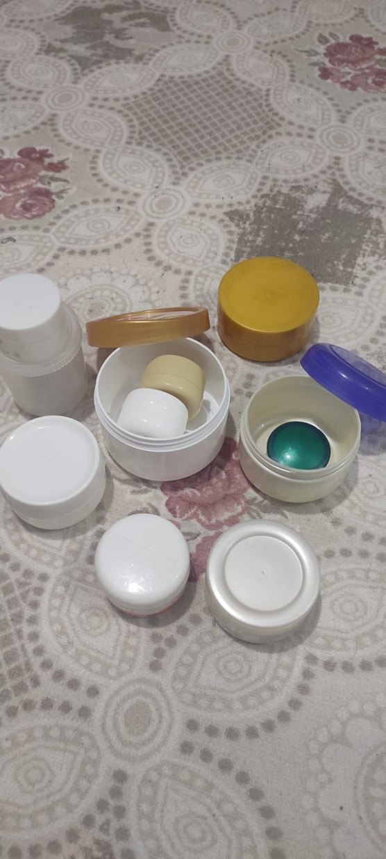 Farklı boyut ve renklerde çeşitli krem ve kaplardan oluşan makyaj ve bakım ürünleri.