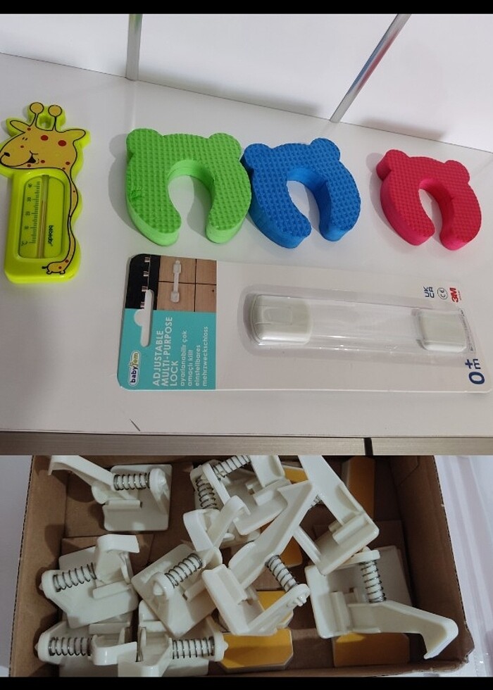 Çeşitli markalara ait bebek güvenlik ürünleri. Çekmece kilitleri 8 adettir. Hepsini toplu yada tek tek alabilirsiniz. Üzerindeki fiyat set fiyatıdır.