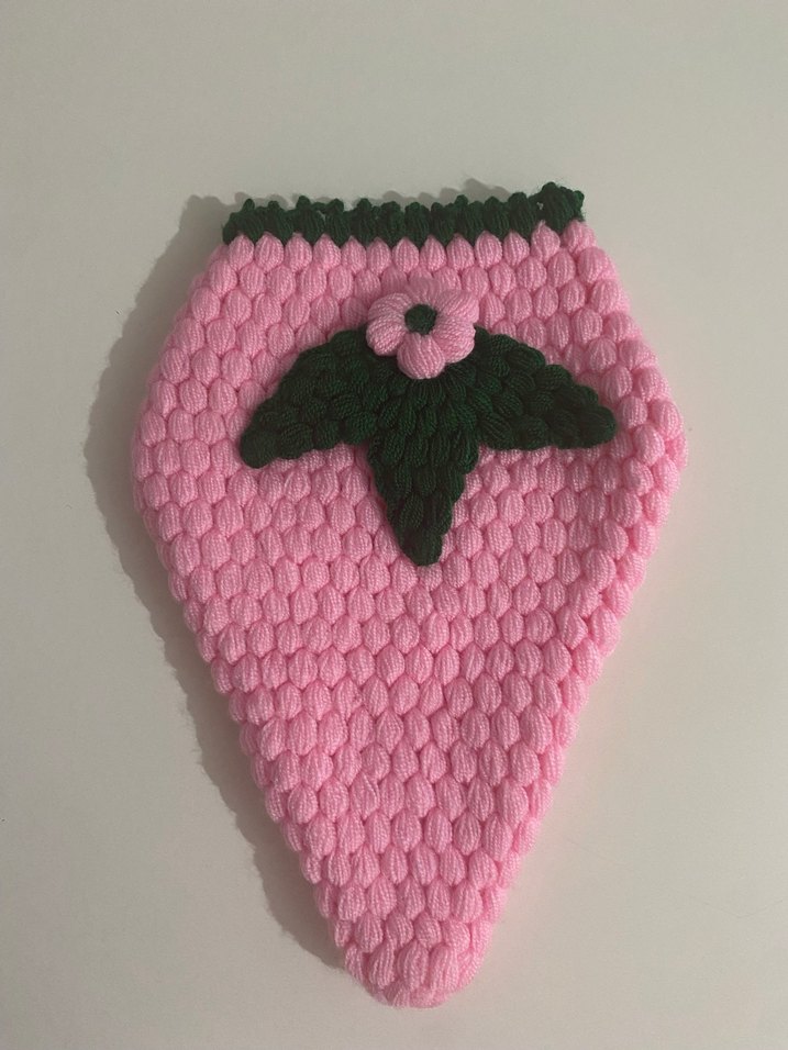 Pembe renkli, dokulu örgü tasarıma sahip banyo süngeri, üzerindeki çiçek ve yaprak detaylarıyla renkli bir görünüm sunar. İstediğiniz model hakkında soru sorabilir sipariş verebilirsiniz