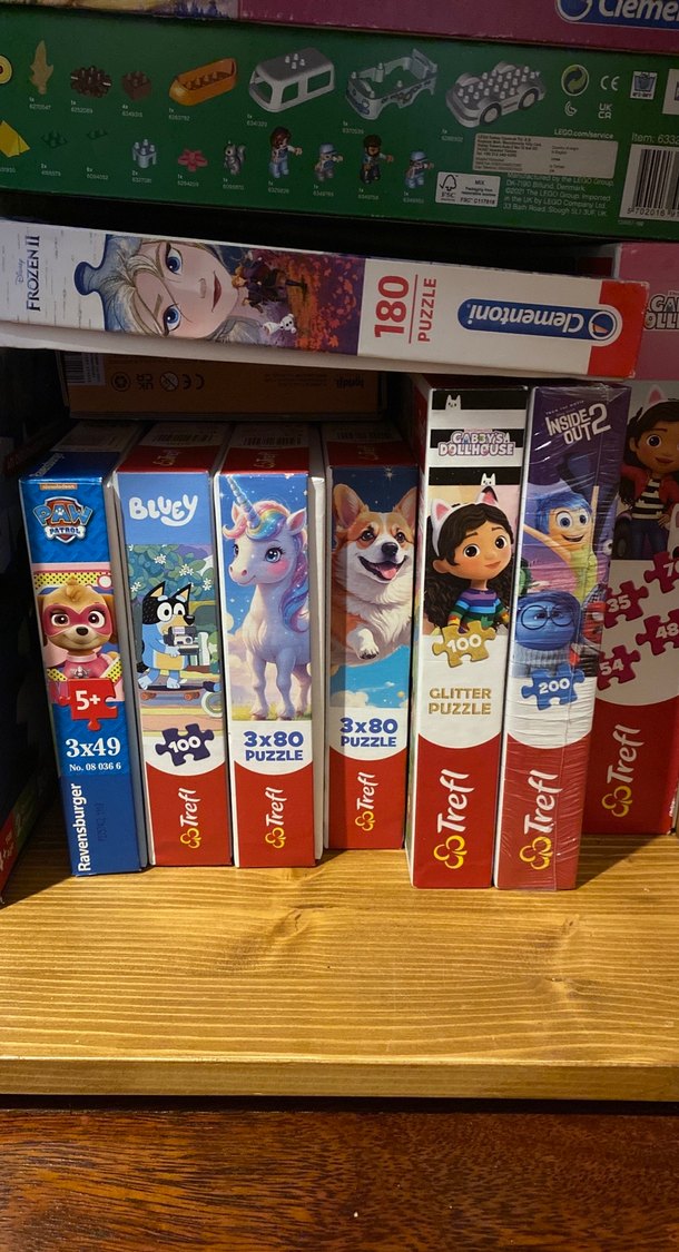 Herbirinin fiyatidir. Toplu alimda indirim yapacagim. Bu set, tek boynuzlu atlar, köpekler ve çizgi film karakterleri gibi çeşitli temalarda çok renkli puzzle'lar içerir. Parça sayıları 3x49, 3x80, 100 ve 200'dür.