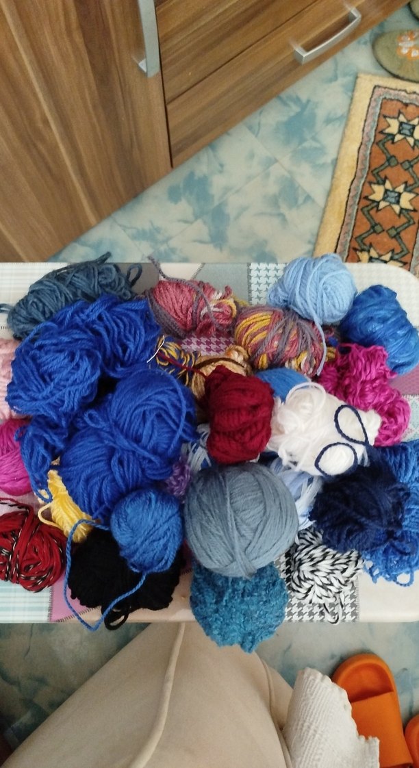 El işi ve karşı kültür projeleri için çeşitli renklerde iplik topluluğu.