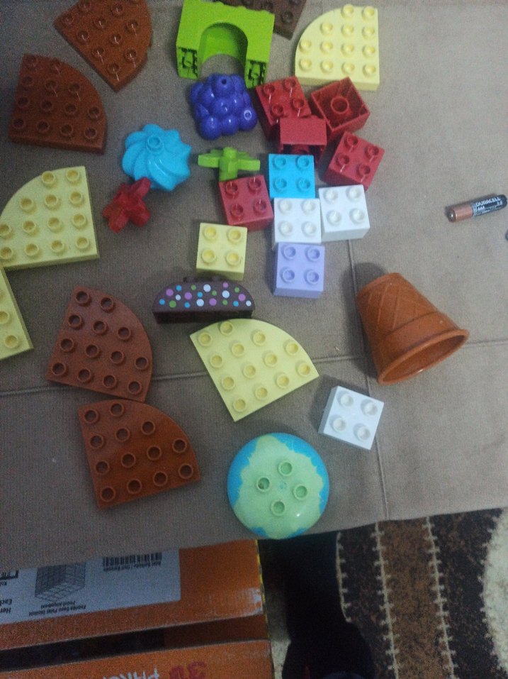 Farklı renklerde Lego parçaları, tuğlalar, koniler ve desenli parçalar içerir. 26 parça orjinal