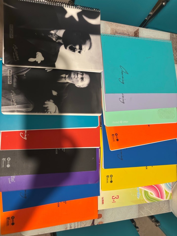 Soldaki sırada sadece lacivert defter çizgili sağdaki sırada turkuaz defter çizgili ve 3+1 defter var ( 2 kareli+1 çizgili) Spiral kapaklı lise defter seti toplam 15 adet fiyatı