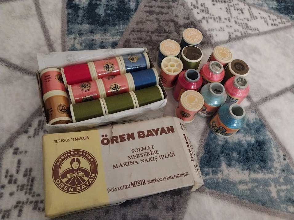 Yeşil, kahverengi, mavi ve kırmızı gibi çeşitli renklere sahip el işi iplikleri seti. tekli satılmıyor tamamı görselde