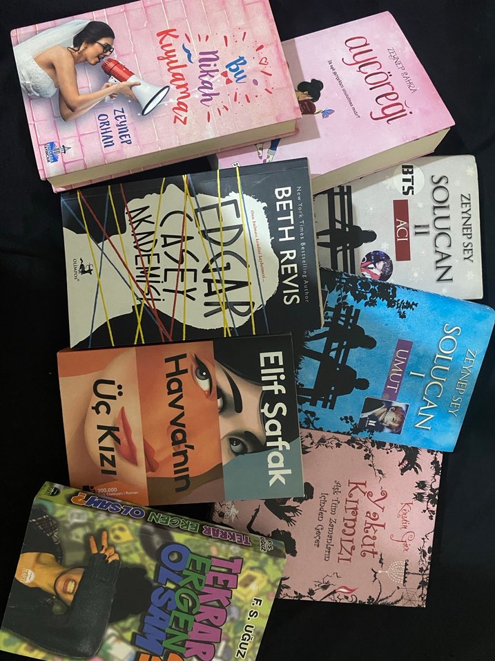 Elif Şafak, Beth Revis ve Zeynep Sey gibi yazarların romanlarından oluşan çeşitli kitap koleksiyonu. Farklı temalarda birçok kitap içerir. Tanesini 40 tlden veriyorum, indirim isteyebilirsiniz. Kitap ayracı hediye edeceğim alanlara. Almak isteyen istediği kitap için ayrı ilan açtırsın. Hiçbirinde kusur bulunmamakta.
