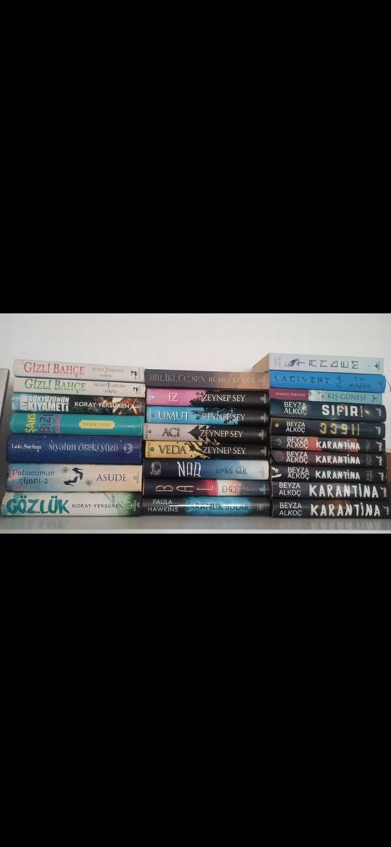 Karantina, Gizli Bahçe, Sıfır gibi farklı yazarlara ait çeşitli romanların bulunduğu kitap koleksiyonu. fiyat sorup ilan actirabilir siniz