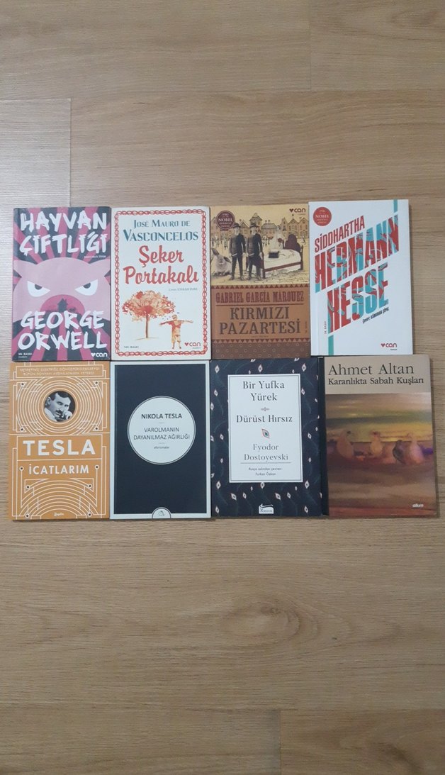 FİYAT SORUNUZ İLAN AÇTIRINIZ LÜTFEN!!!George Orwell, Ahmet Altan, Nikola Tesla ve diğer yazarların eserlerinden oluşan roman seti. 'Hayvan Çiftliği', 'Kırmızı Pazartesi' ve 'Dürüst Hırsız' şeker Portakalı,siddhartha gibi kitaplar içerir.