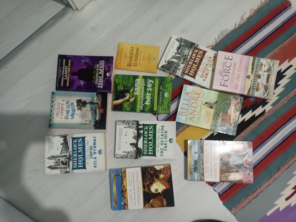 Birbirinden farklı Sherlock Holmes kitapları ve klasik edebiyat eserlerinden oluşan kitap seti.