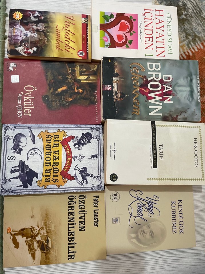 Dan Brown, Herodotos ve diğer yazarların eserlerini içeren roman ve tarih kitapları seti. Hikayeler, tarih ve özgüven konuları yer alıyor.