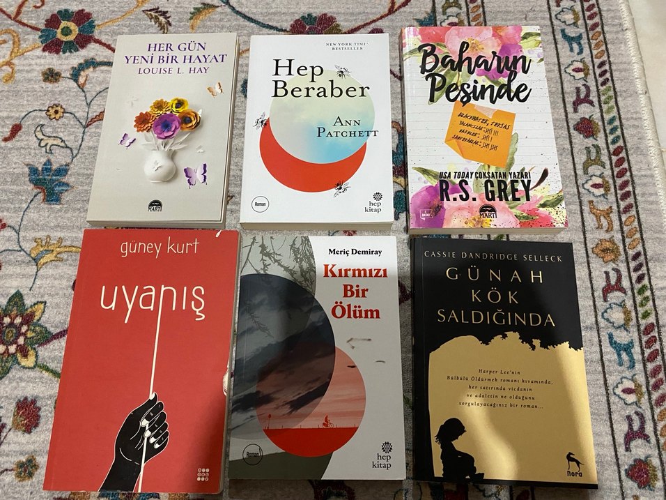 Ann Patchett'in 'Hep Beraber' adlı kitabı ve diğer Türkçe romanların bulunduğu çeşitli temalı roman seti.