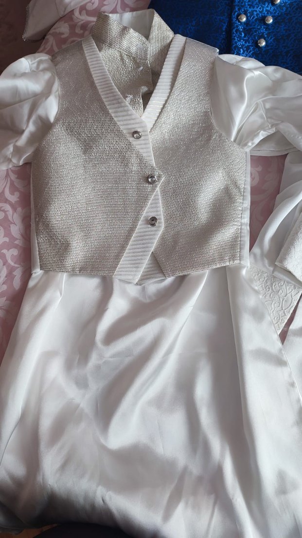 Düğmeli, yakalı ve fitted kesime sahip kız çocuk beyaz bolero. Parlak sentetik kumaştan, klasik ve zarif tarzda, kolsuz model. ✨Sifirdir .