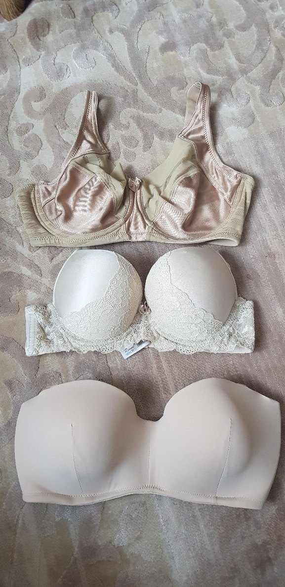 cesitli sutyenler. tekli fotolarda ilk krem ortasi dantelli krem model markasi etiketli lora garden 34/75 dolgu destekli, ikinci ten rengi düz model penti ürünü etiketi kesik desteksiz dolgusuz 75 D. üçüncü model sungersiz transparan iceren minimizer gabriel marka 80C etiketli ve balenli ürün. hepsi sorunsuz ve iyi yeni durumda. alım oncesi ilan açtiriniz. tekli satis fiyatidir.