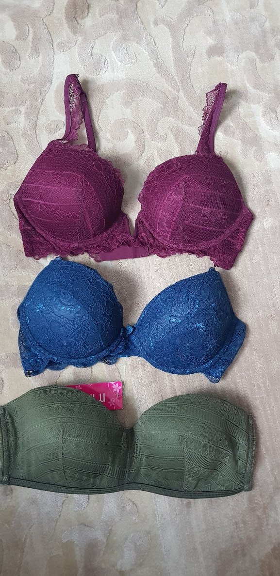 Çeşitli üst sütyenler. yesil ve mavi renk sütyenlerin tekli olarak detayli ilanlari sayfamda mevcut. visne rengi model marks and spencer a ait etiketi kesilmis dolgu destekli 75 B gupurlu model sorunsuz yeni durumda urun.