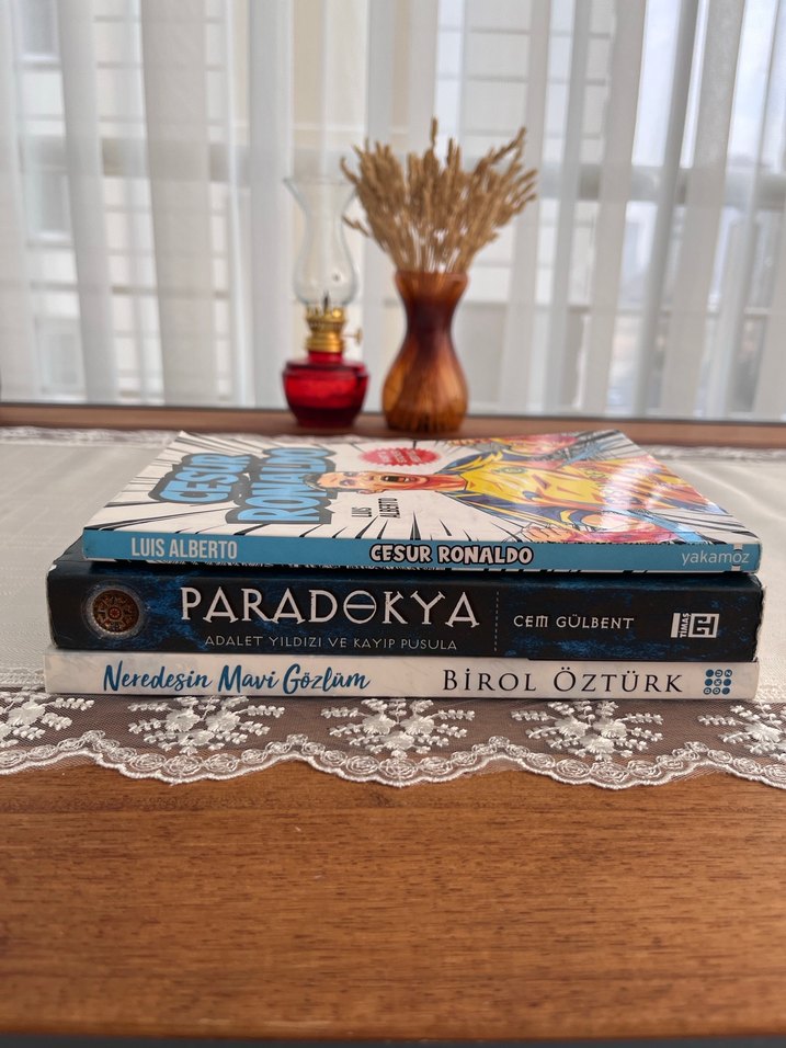 Adet fiyatıdır,istenen kitap için ilan açtırınız."Cesur Ronaldo," "Paradokya" ve "Neredesin Mavi Gözlüm" gibi çeşitli yazarların romanlarından oluşan set.