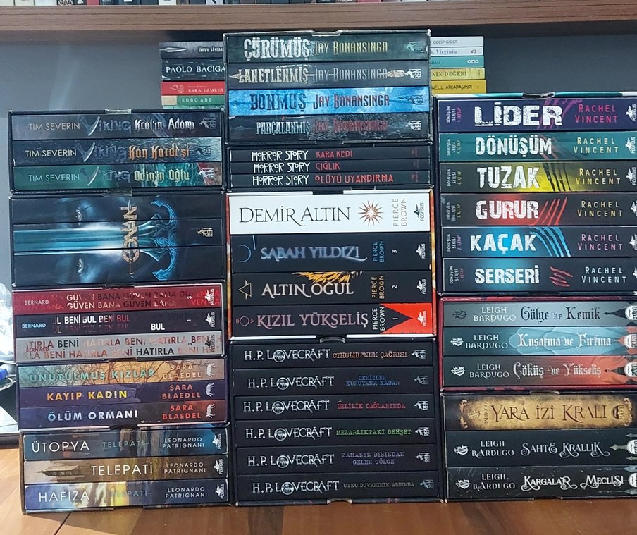toplu fiyattır. tek alımda fiyat sorunuz. seriler bozulmaz.H.P. Lovecraft, Leigh Bardugo ve Paolo Bacigalupi gibi yazarların Türkçe romanlarından oluşan bir set.