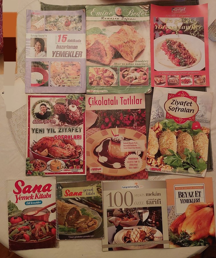 Çeşitli yemek, çikolatalı tatlı ve ziyafet sofraları tarifleri içeren yemek kitapları koleksiyonu. Hızlı yemekler ve özel sofralar yer alıyor. ️ 15-30sayfalık