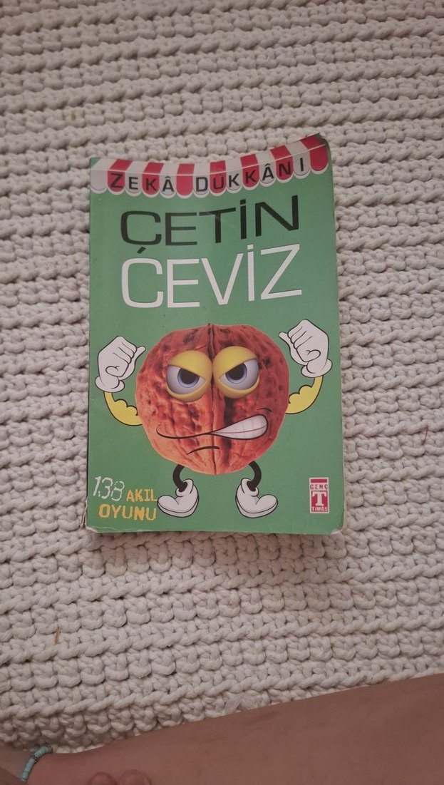 Zeka Dükkanı serisinden "Çetin Ceviz" kitabı, 1.35 akıl oyunu içerir. Kapakta eğlenceli bir ceviz karakteri bulunur.