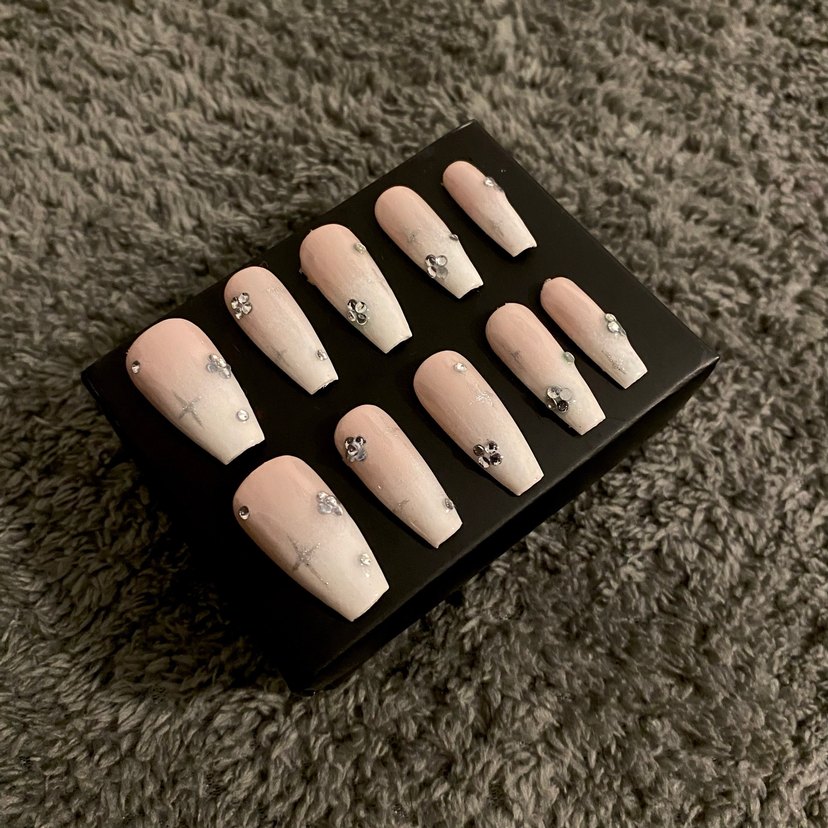 Küçük taşlar ve hafif haç desenleriyle bej tırnak süslemeleri, zarif bir görünüm sunar. Ürünümüz 10’lu set halinde, tırnak ölçülerinize ve istediğiniz forma özel olarak hazırlanmaktadır Kişiye özel tasarım talepleriniz ve ölçü alımı için görsellerin sonundaki bilgilendirme fotoğrafını inceleyebilir, bizimle iletişime geçebilirsiniz.
