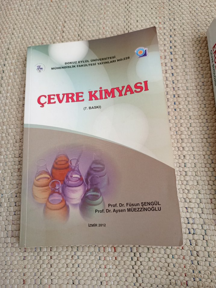 Dokuz Eylül Üniversitesi tarafından 2012'de yayımlanan, Prof. Dr. Füsun Şengül ve Prof. Dr. Aysen Müezzinoğlu'nun yazdığı 7. baskı Çevre Kimyası kitabı. Mühendislik(özellikle çevre mühendisliği) ve diğer bölümler için kaynak olabilecek bir üründür. Altı çizili bölümler ve alınmış notlar bulunmaktadır. Kitap bütünlüğü tam eksik sayfa yoktur. Ek kaynak olarak rahatlıkla kullanılabilir.