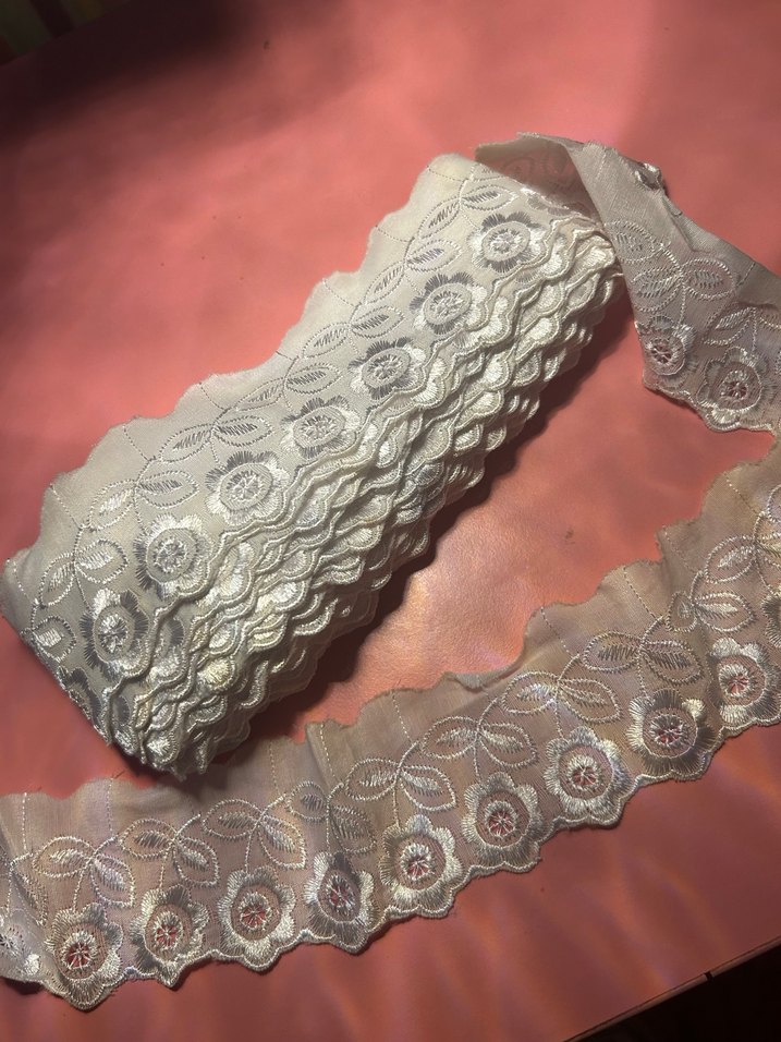 " METRE FİYATI " çiçek işlemeli ve dalgalı kenarlı dantel şerit, dekoratif el işçiliği için uygun.