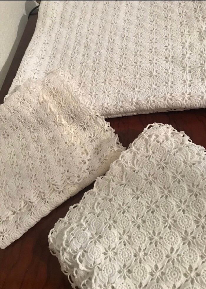 #Çeyizlik 21 parça Dantel Salon Takımı.165-165 büyük masa,18 parça sehpa,2 parçada büyük danteli mevcut.Tek tek küçük motifler birleştirilerek yapılmış zor bir model.70 numara çapa ile örülmüştür.Sıfır ürün #salon takım #çapa #anchor #tığ işi #çeyiz #dantel