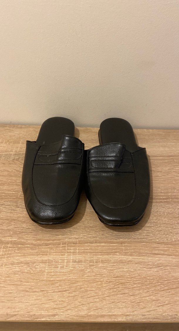 Hiç kullanılmadı 42 numara siyah deri terlik fotoğraflarda görüldüğü gibidir detaylı çektim