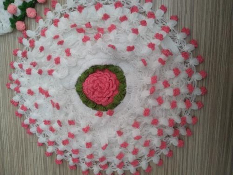 Yumuşak örgüden yapılmış, pembe fırfırlı ve rahat bohem tarzda kadın atkısı. Ortasında retro çiçek deseni bulunur. tanesi 150 TL toplu alımda yardımcı olurum