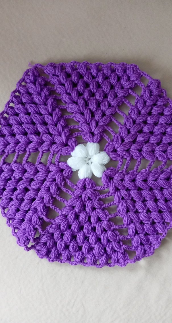 32 cm boyunda beyaz ve mor ip ile örülmüştür