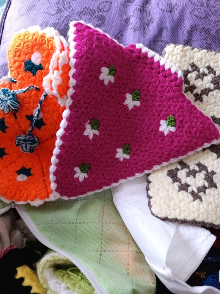 Çiçek desenli, yumuşak dokulu renkli örgü duş lifler el yapımı