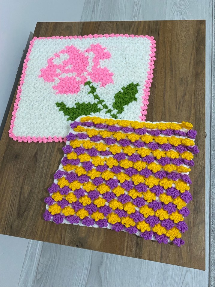Canlı renklerde dokulu desenlere sahip el yapımı banyo süngerleri. Yumuşak ve dekoratif yapısıyla banyo kullanımına uygundur.