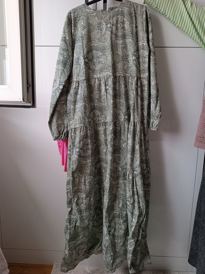 Ceylan otantik 36 38 beden Bohem Gri Desenli Uzun Keten Elbise