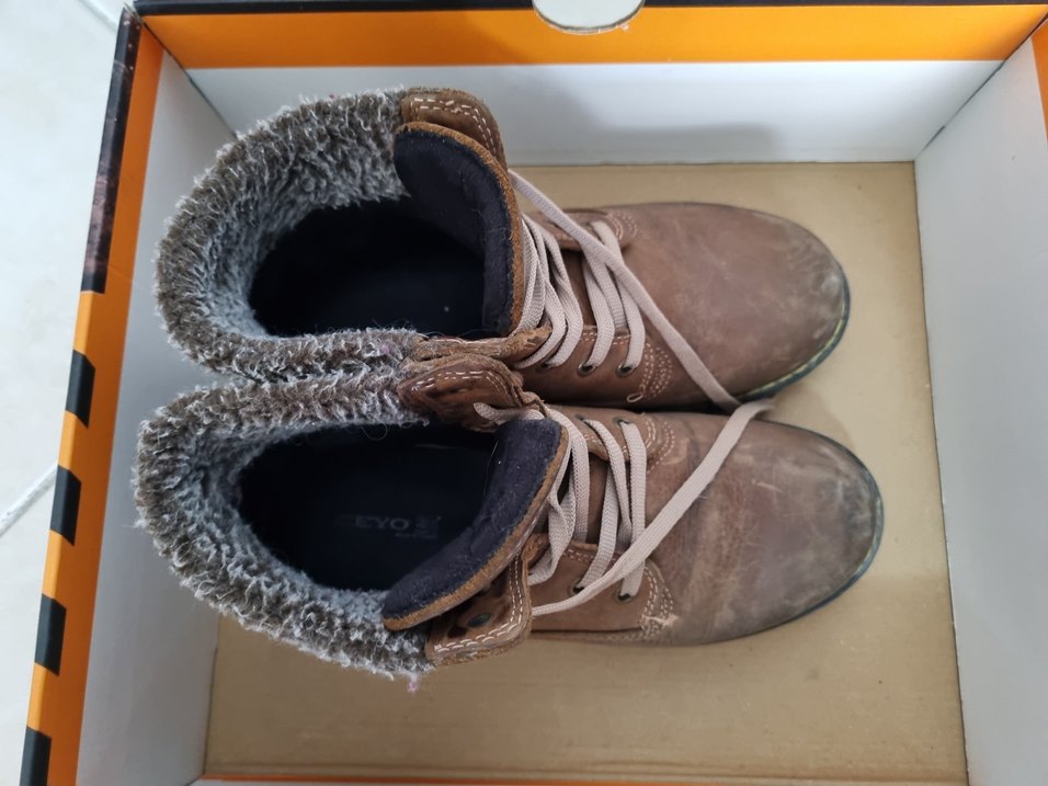 Ceyo markasına ait kışlık bot. • Renk: Kahverengi • İçi peluş/kürklü (sıcak tutar) • Kalın ve dişli taban • Soğuk kış günleri için uygun • Kutu ile gönderilecektir Kullanıma bağlı izler mevcuttur, genel durumu iyidir. Fiyatı durumuna göre uygundur.