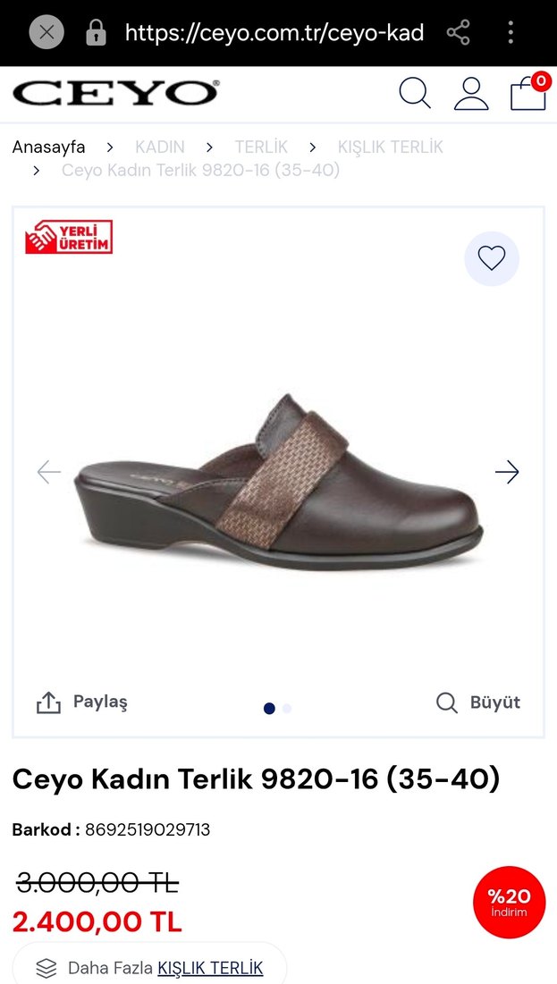 Ceyo markalı kahverengi deri, yılan desenli bant detaylı, dolgu topuklu kadın terlik, günlük kullanım için uygundur. evde 1 kere giyildi. teklif gönderebilirsiniz