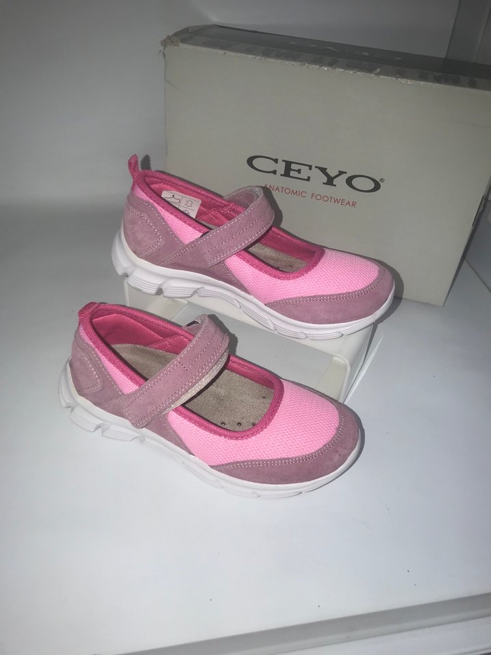 Pembe tonlarında, bağcıksız cırtlı ve pastel tie-dye desenli kız çocuk spor ayakkabısı. Rahat kauçuk tabanlı, CEYO markalı.32 numara