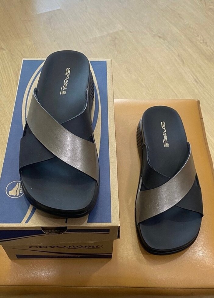 Gri renkte, tokalı bantlı ve dolgu topuklu kadın terliği. Kauçuk malzemeden yapılmış, günlük kullanıma uygun modern bir tasarım.