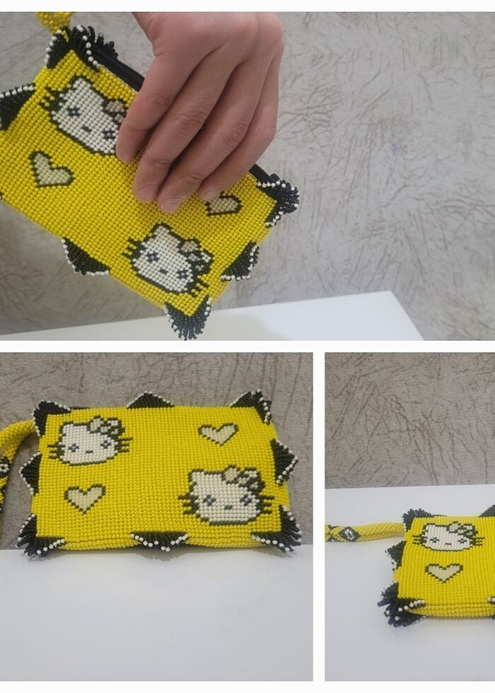 Orijinal el yapımı içi kadife cüzdan. Çamaşır makinesinde yıkanabilir, asla bozulmaz, kopmaz ve boncukları düşmez. Özel ipi sayesinde çekmez ve 100 yıl dayanıklıdır. Hatırası yıllarca kalır.