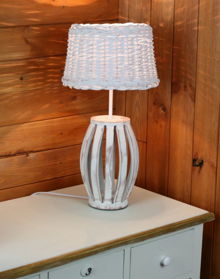 şapkasız ve çıtalı ahşap gövdeye sahip masa lambası, rustik ve samimi bir görünüm sunar. Ahşap iç mekanlara uygundur.