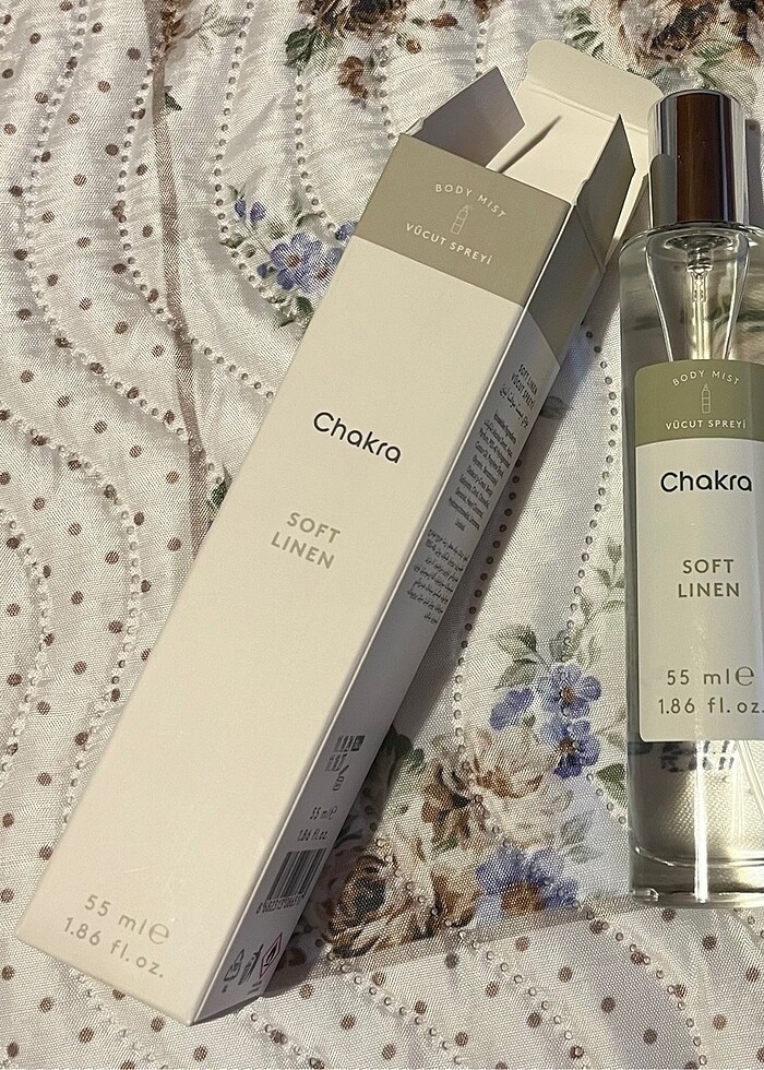 ORJİNAL CHAKRA ÜRÜNÜ, SOFT LİNEN KOKUSU, SADECE BİR İKİ FIS SIKILDI, KOMPLE DOLUDUR. 55 ML.
